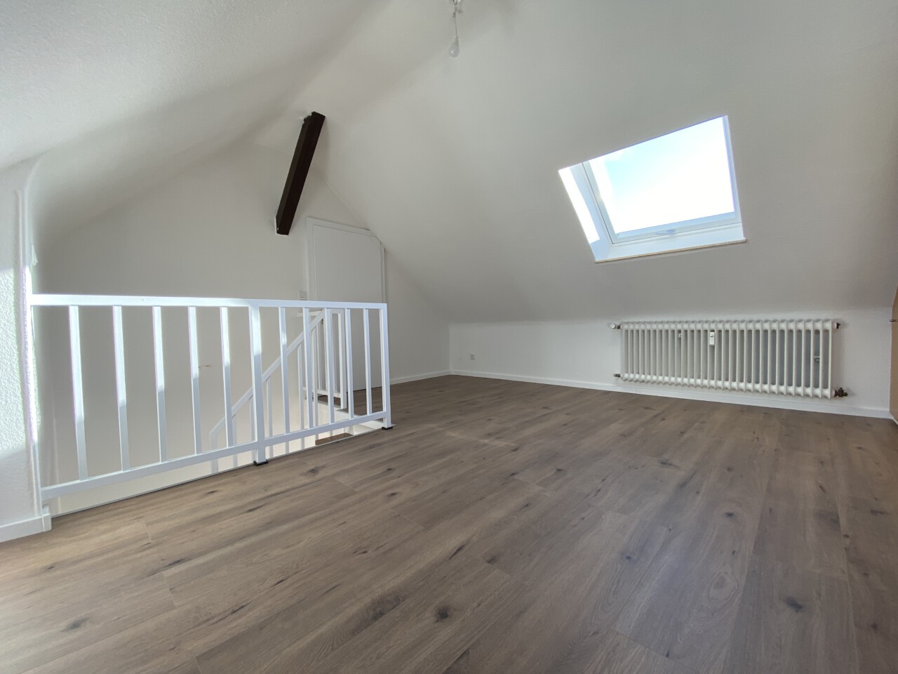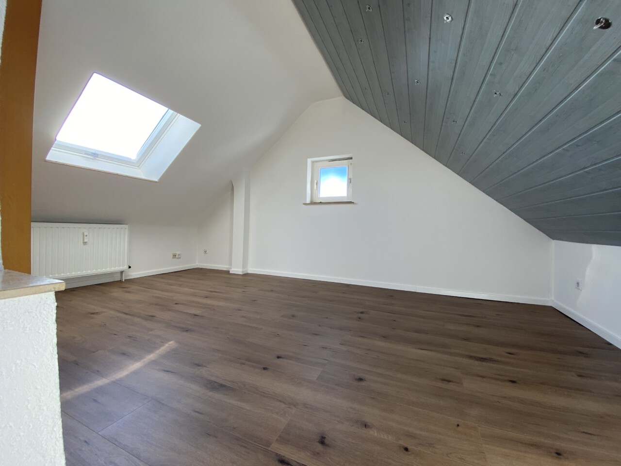 Sie betreten das Maisonette über den offen gehaltenen Wohnbereich mit separater Küche. Zur linken Seite erreichen Sie die Loggia, die Platz für einen kleinen Tisch mit Stühlen bietet. Geradeaus betreten Sie über eine kleine Diele das erste Schlaf-/Kinder-/Arbeitszimmer, das modernisierte Gäste-WC, sowie das ebenfalls modernisierte Tageslichtbad mit bodentiefer Dusche. Neben dem Eingangsbereich können Sie über die Wendeltreppe das geräumige Dachgeschoss betreten, was aufgrund seiner Größe als Schlaf- und Arbeitszimmer genutzt werden kann. Die neuwertige Dacheindeckung/-isolierung und -fenster sorgen für ein angenehmes Klima im Sommer und Winter. Eine Garage kann zzgl. 70,- EUR angemietet werden. Der gemeinschaftlich nutzbare Garten und ein eigener Kellerraum runden das Angebot ab.