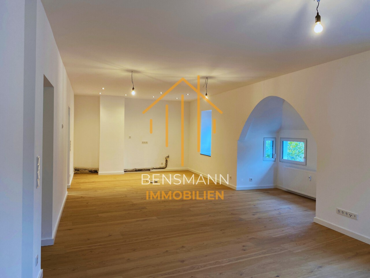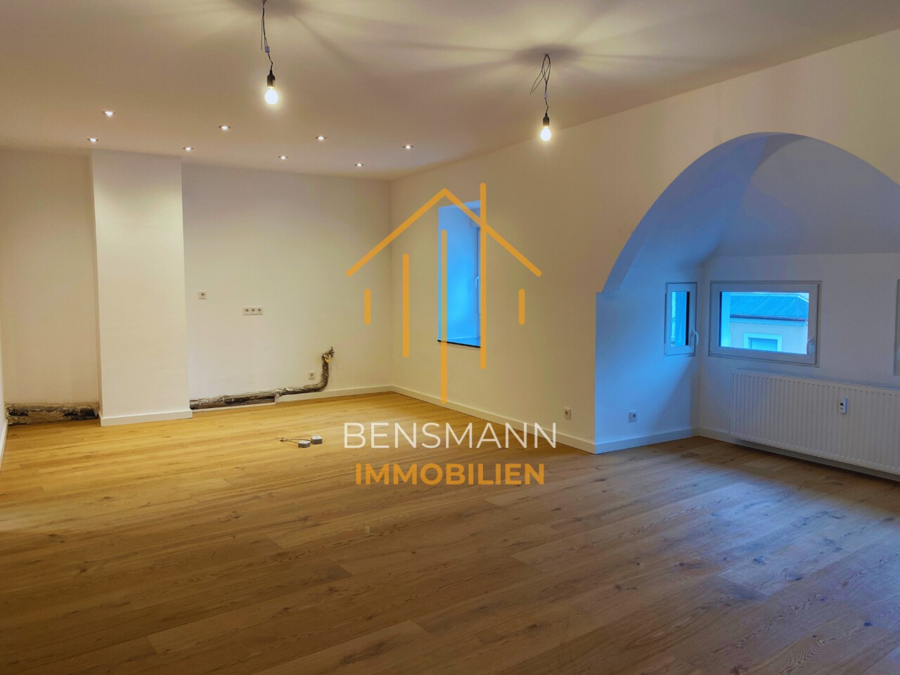 In der Wohnung erwartet Sie ein komplett offen gehaltener, ca. 51,00 m² großer Wohn-/ Ess- und Kochbereich, der Ihnen zahlreiche Möglichkeiten bietet, sich ganz nach Ihren Wünschen
